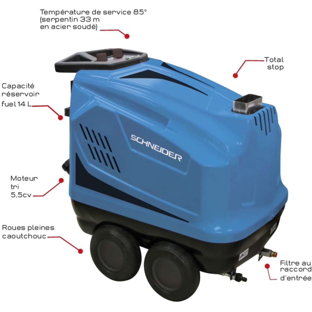 Nettoyeur HP eau chaude 380V 14 l/min 160 bar avec flexible 10m et total stop SCHNEIDER NHP - 50089