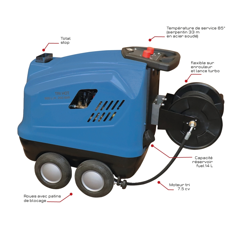 NETTOYEUR HP EAU CHAUDE TRI 900L/H 200 BARS + ENR 20M + TURBO - SCHNEIDER NHP - 50098