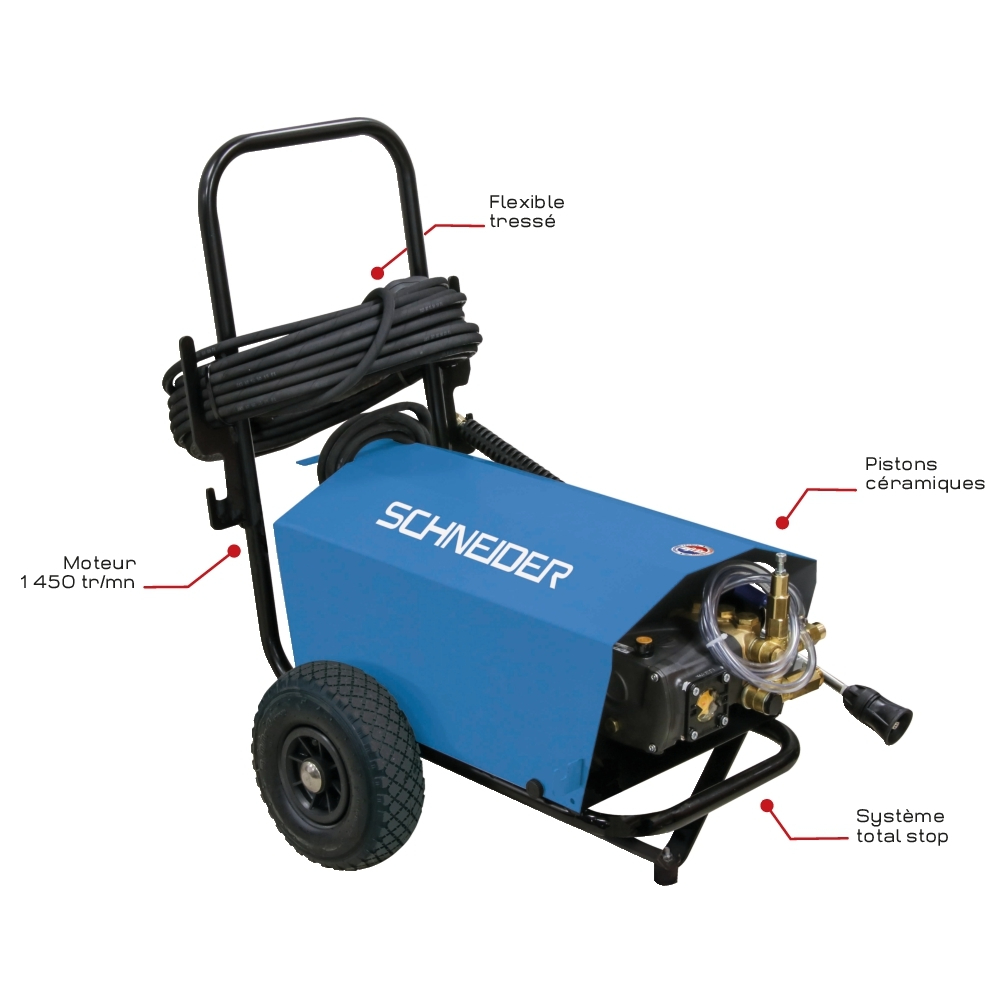 NETTOYEUR HP EAU FROIDE MONO 540L/H 160 BARS + FLEXIBLE 20M TOTAL STOP - SCHNEIDER NHP - 50044