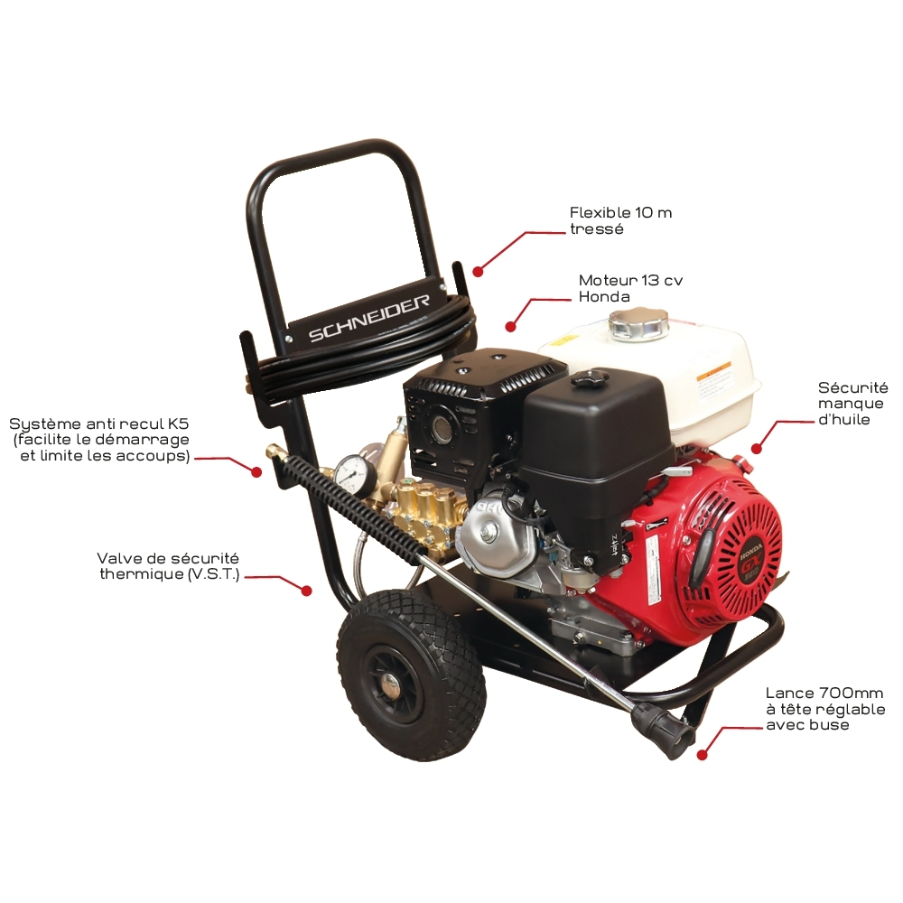 Découvrez NETTOYEUR HP EAU FROIDE THERMIQUE 900L/H 240 BARS + FLEXIBLE 10M + LANCE - SCHNEIDER NHP - 50031 disponible à l'achat