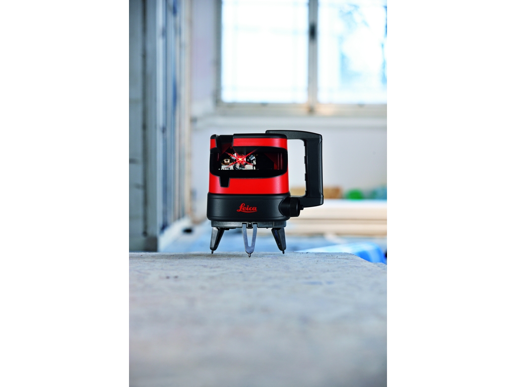 À l'aide du point d'aplomb, vous pouvez mettre le Leica Lino en station sur le point de votre choix. Le faisceau d'aplomb est décalé au coin de l'outil. Le Leica Lino ML90 peut donc être mis en station rapidement et facilement sur les marques, même à proximité des murs.