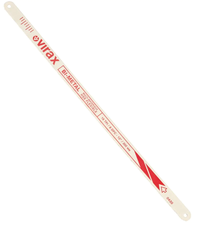 Lame bi-métal HSS, 8-10 dents pour les aciers, aluminium, inox, PVC ou bois épais (8 dents) ou moins épais (10 dents), 12 dents pour le cuivre, les aluminium ou inox de faible épaisseur