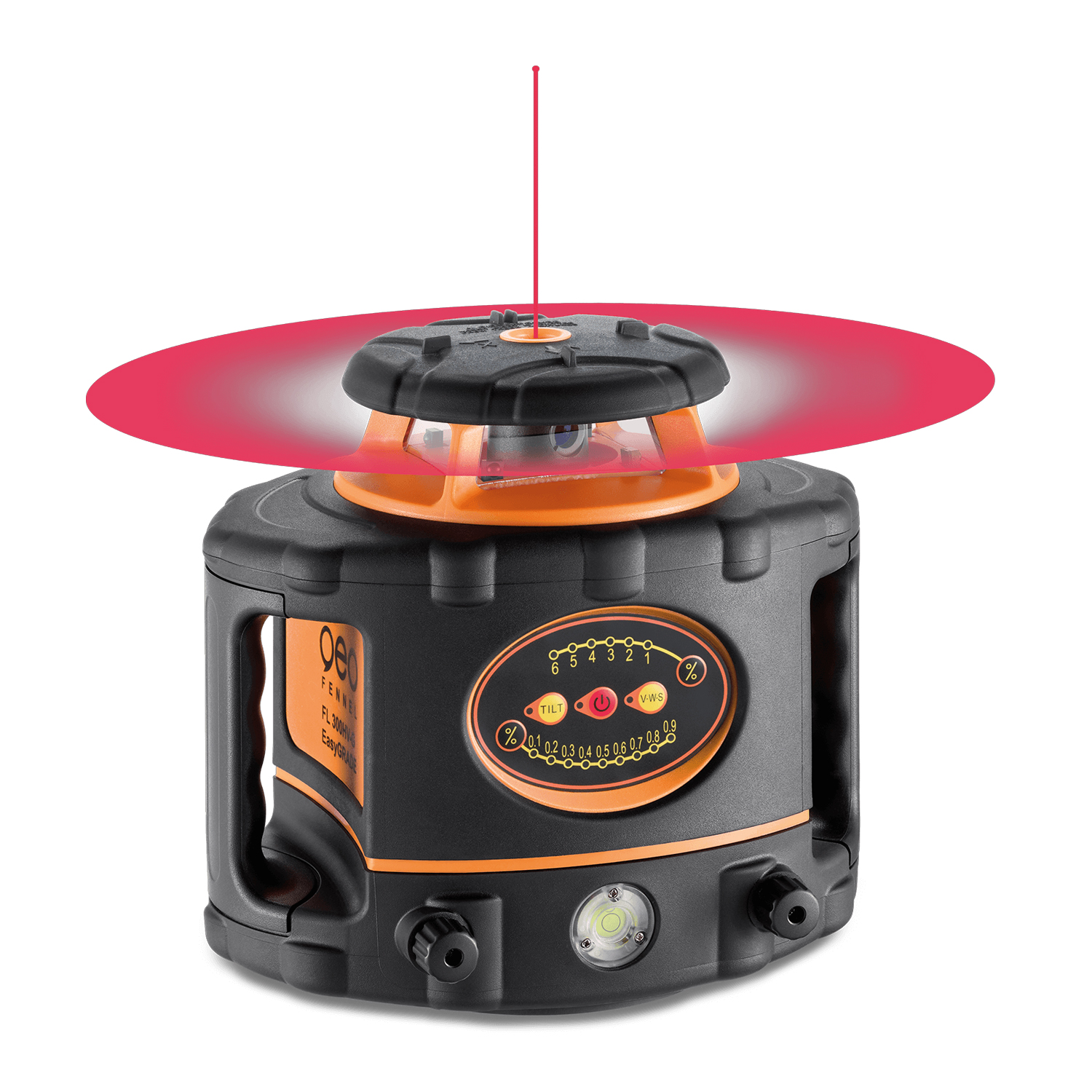 - Le laser rotatif FL 300HV-G EasyGRADE permet un réglage digital simple et rapide de la pente sur l’axe X, de 0,1 % à 6,9 %, adapté aux travaux de drainage, pavage et nivellement.