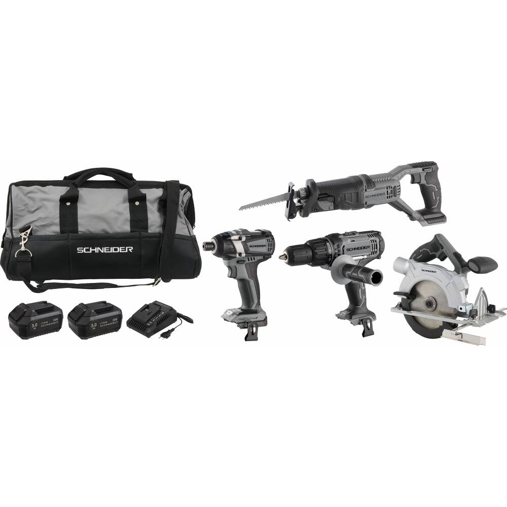 PACK SCIE SABRE+VISSEUSE A CHOC+SCIE CIRC+PERCEUSE 50NM+SAC+CHARGEUR+2 BATT 5AH - SCHNEIDER ELECTRO - 50940
