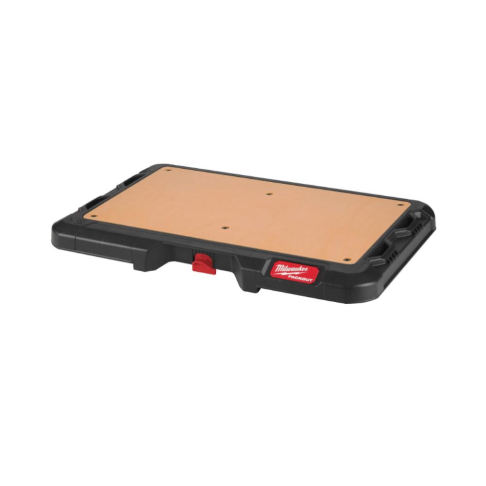 Le plateau en bois, dimensionné à 53 x 607 x 389 mm, se positionne sur le dessus de la caisse Packout pour une surface de travail ou de rangement supplémentaire.