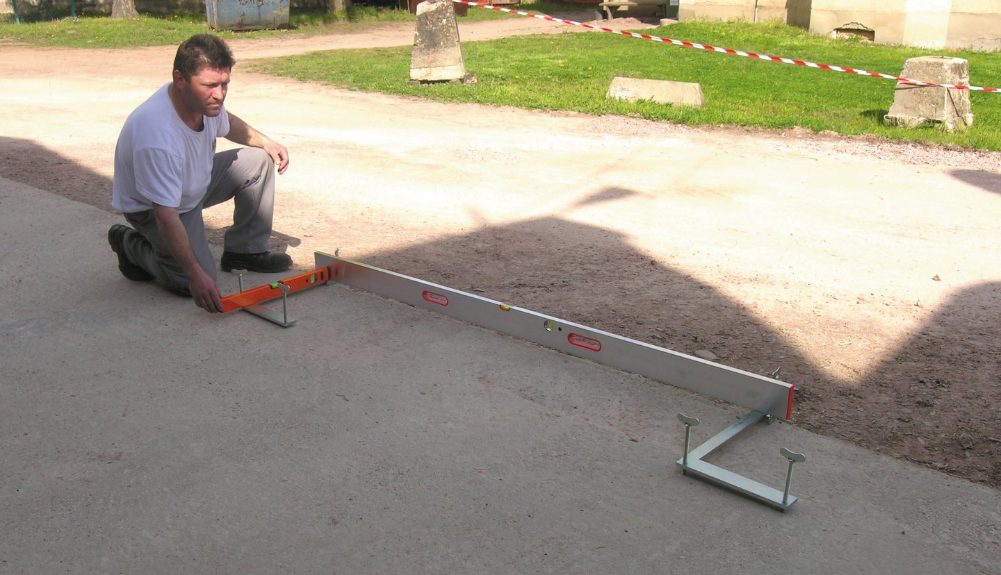 Pour la réalisation d'une arase parfaite en bord de dalle. Outil indispensable pour la réalisation de l'arase périphérique de mortier lors de la pose de la première rangée, dans le cas de construction collée.