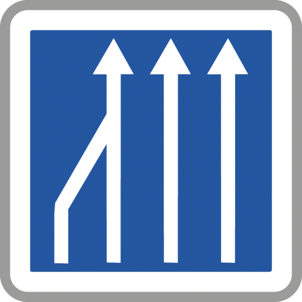 Ce panneau est conçu pour réduire le nombre de voies sur une route à chaussées séparées ou sur un créneau de dépassement. Son installation doit être effectuée dans le respect des normes de sécurité routière pour garantir une signalisation claire et efficace.
