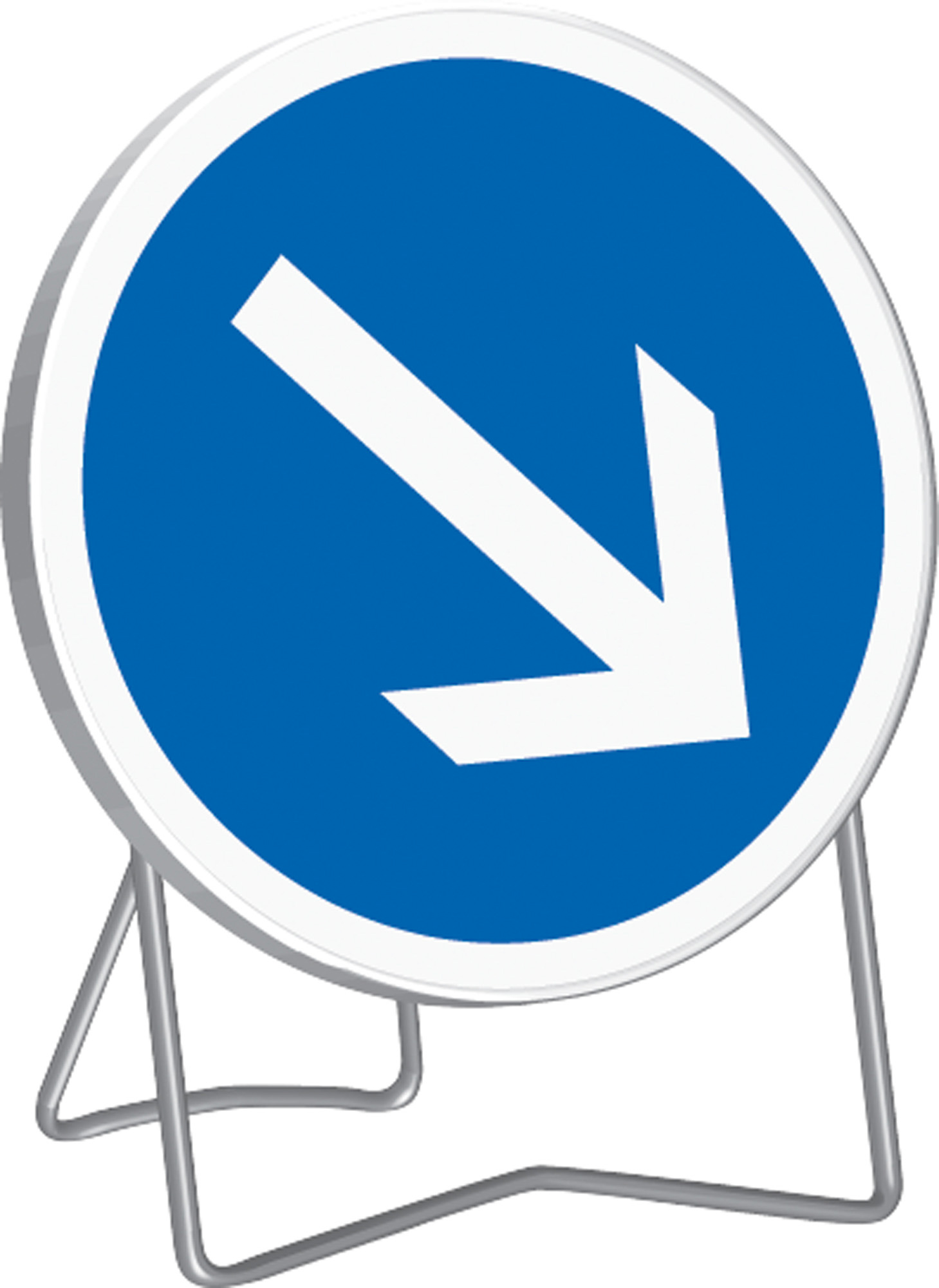 Découvrez Panneau d'obligation de tourner à droite B21a1 850 mm classe T1 + PIED - TALIAPLAST - 524016 disponible à l'achat