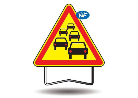 Panneau de signalisation AK30 1000 classe T1 RALENTISSEMENT-BOUCHON + PIED - TALIAPLAST - 522010