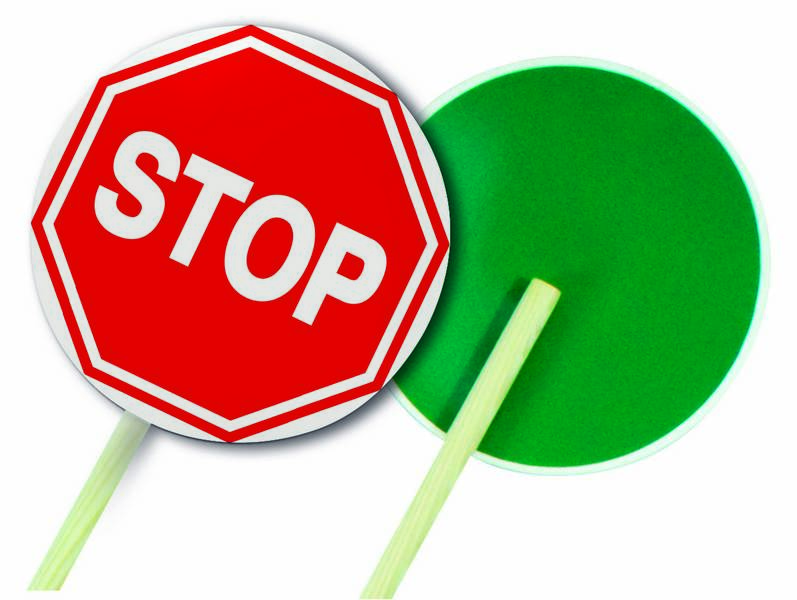 - Sérigraphie : 1 face rouge “STOP”, 1 face verte “passage autorisé”