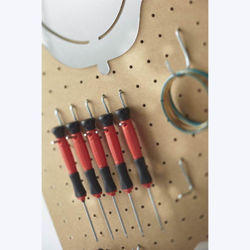 Découvrez le panneau perforé en isorel, idéal pour organiser vos outils. Avec une épaisseur de 3 mm et des dimensions de 600 x 900 mm, ce panneau de rangement permet d'accueillir jusqu'à 40 outils. L'entraxe des trous de 25 mm garantie une installation facile et pratique, vous permettant de maximiser votre espace de travail tout en gardant vos outils à portée de main. Une solution efficace pour un atelier ordonné.