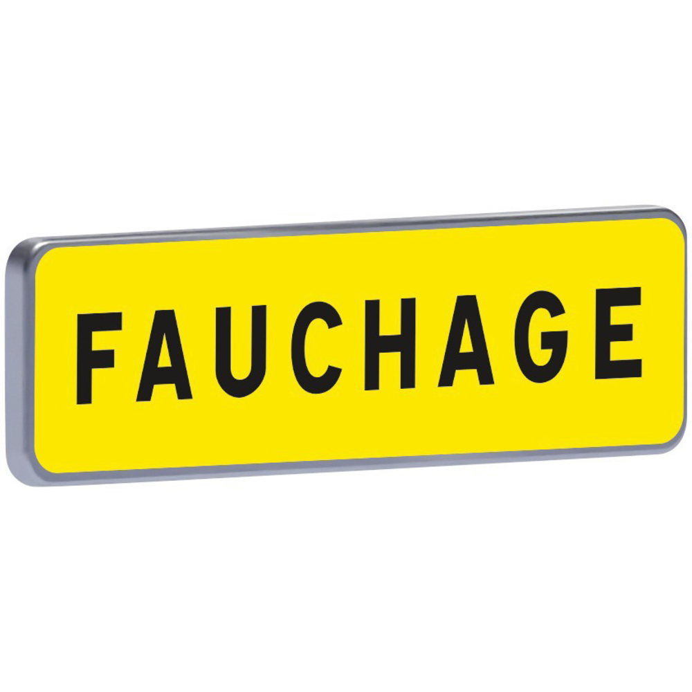 Ce panneau se distingue par sa fonctionnalité et son efficacité en termes de signalisation. Il s'intègre facilement dans divers environnements, garantissant ainsi une sécurité renforcée lors de manœuvres de fauchage. Assurez-vous d'utiliser ce produit pour une signalisation appropriée et visuellement accessible.