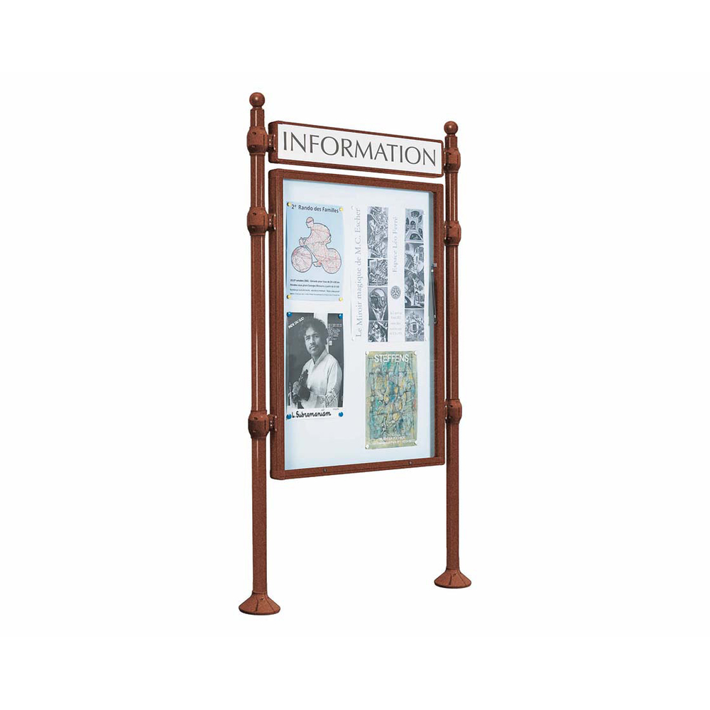 Découvrez Panneau-vitrines d'information Boule Aspect Corten - 1200x800 - Module initial - Double face - Bandeau-titre - PROCITY - 590512.S025 disponible à l'achat