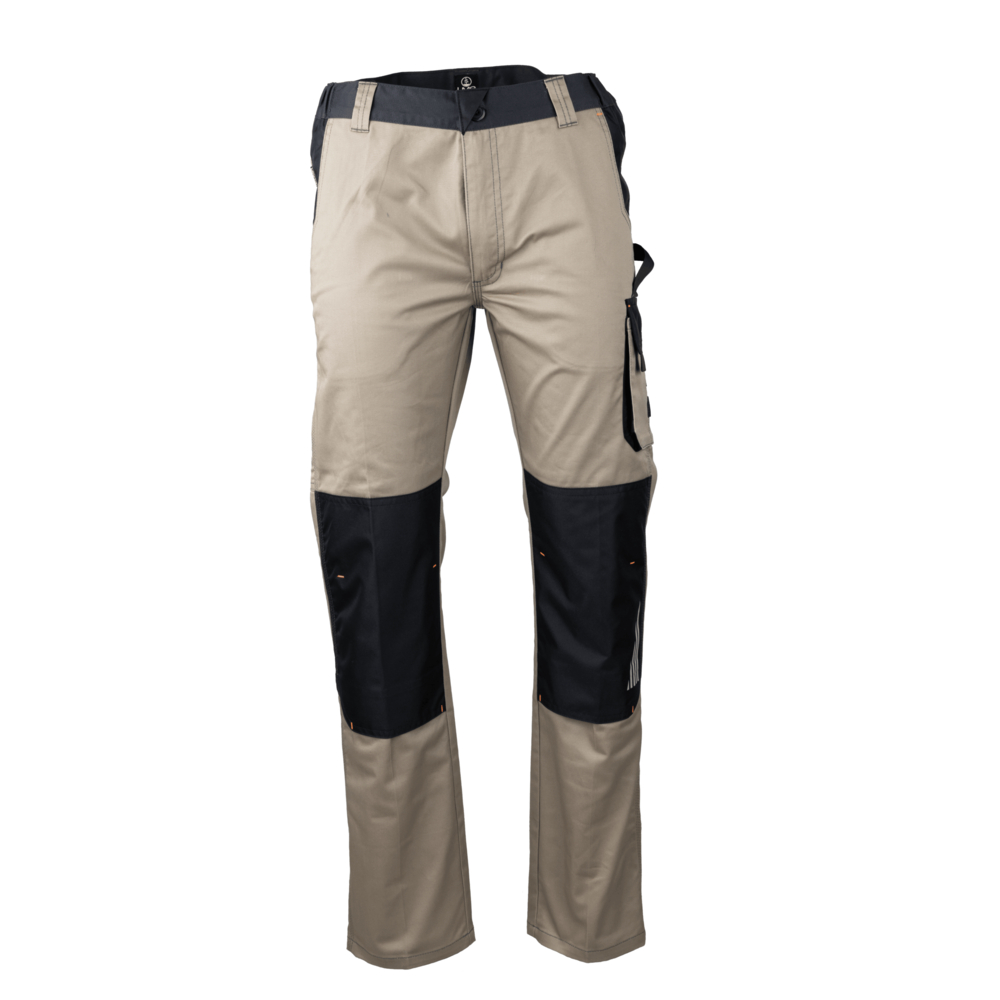Fabriqué en sergé, ce pantalon présente un mélange de 60% coton, 38% polyester et 2% élasthanne, avec un poids de 280 g/m², garantissant durabilité et confort. Ses poches genouillères en oxford sont conçues pour offrir une protection supplémentaire, et son design inclut une poche à soufflet avec rabat sur la cuisse gauche, des poches italiennes renforcées, et des poches à soufflet au dos, toutes sécurisées par des bandes auto-agrippantes. De plus, son transfert rétro-réfléchissant sur la genouillère gauche assure une visibilité accrue dans des conditions de faible luminosité. Ce modèle répond aux normes OEKO TEX, promesse d'un textile sans substances nocives.