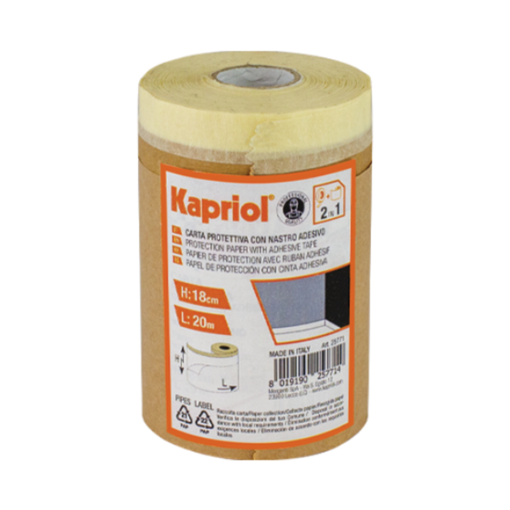 PAPIER DE PROTECTION AVEC RUBAN ADHESIF 18CMX20MT - KAPRIOL - 25771