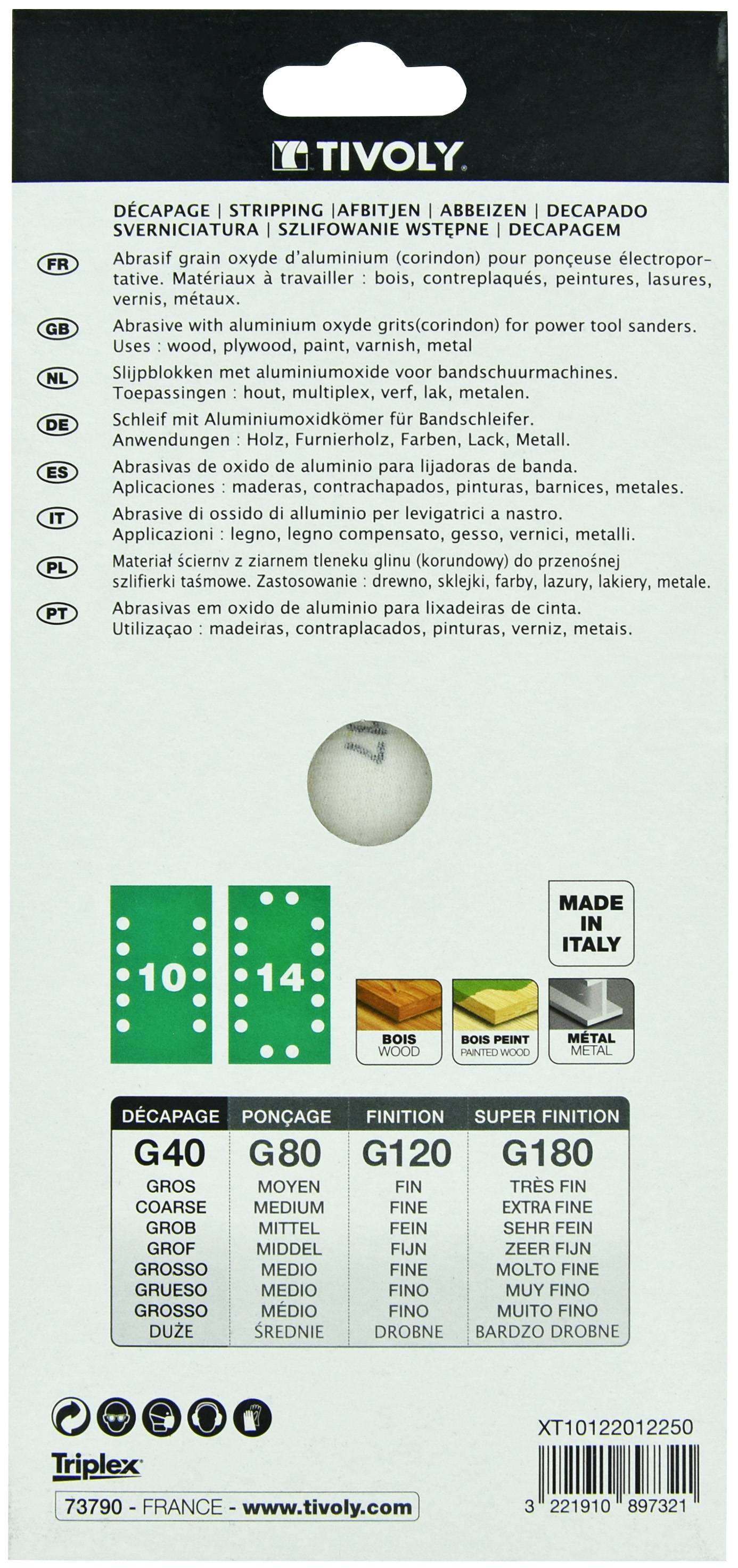 Patin AUTO-AGRIPPANT -115x230mm -Pour ponceuse vibrante / Dim 115x230 / Gr : 40 TIVOLY - XT10122012250