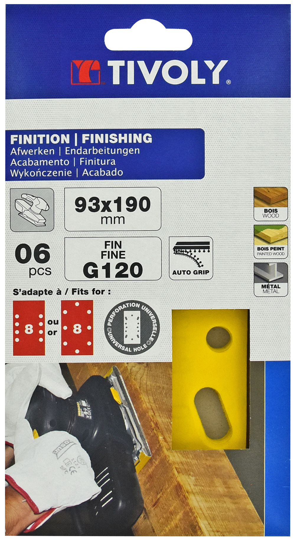 Patin AUTO-AGRIPPANT -93x190mm -Pour ponceuse vibrante / Dim 93x190 / Gr : 80 TIVOLY - XT10122012006