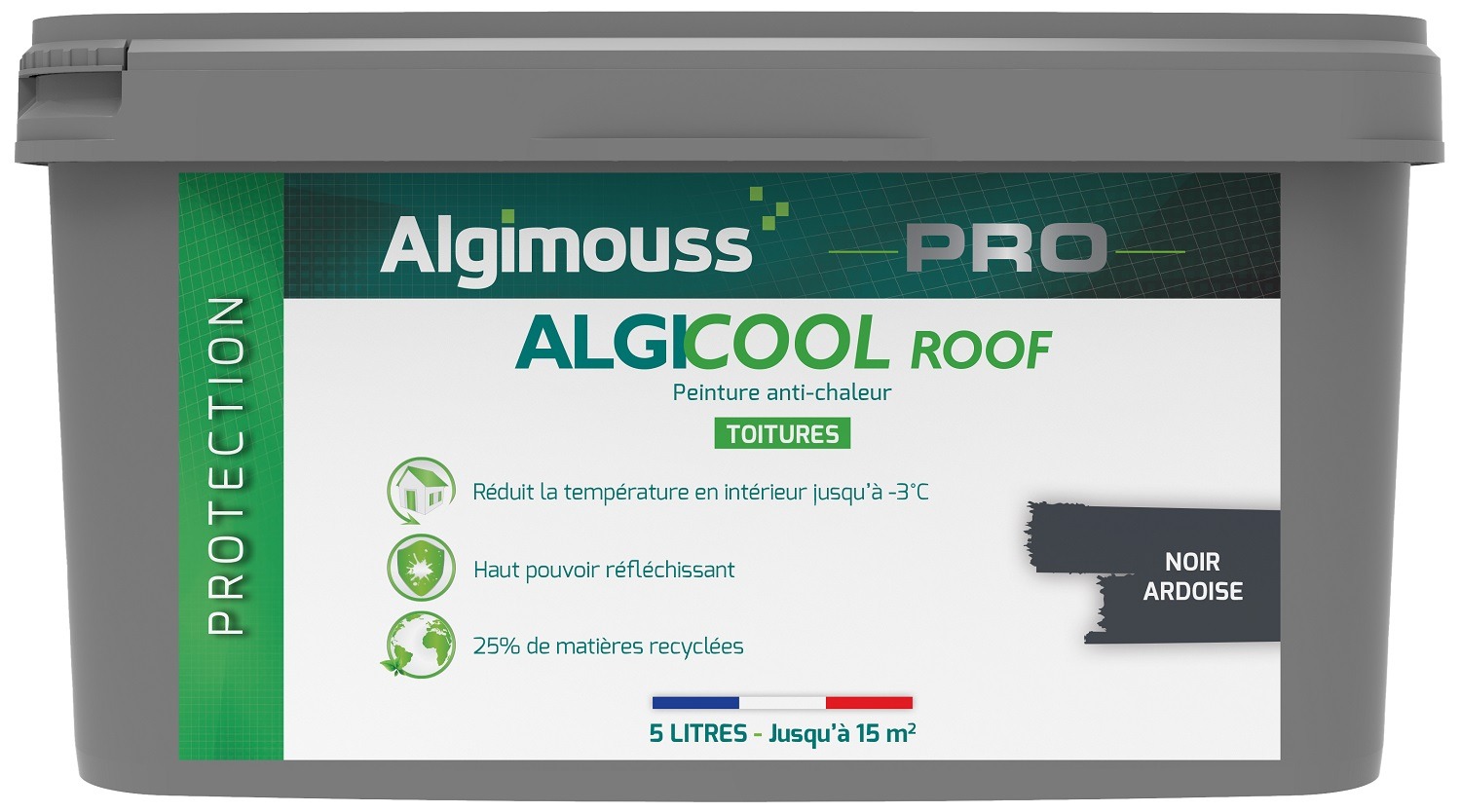 Découvrez Peinture anti-chaleur réflective toiture 5L Noir ardoise Ral 7024 - ALGIMOUSS - 029007 disponible à l'achat