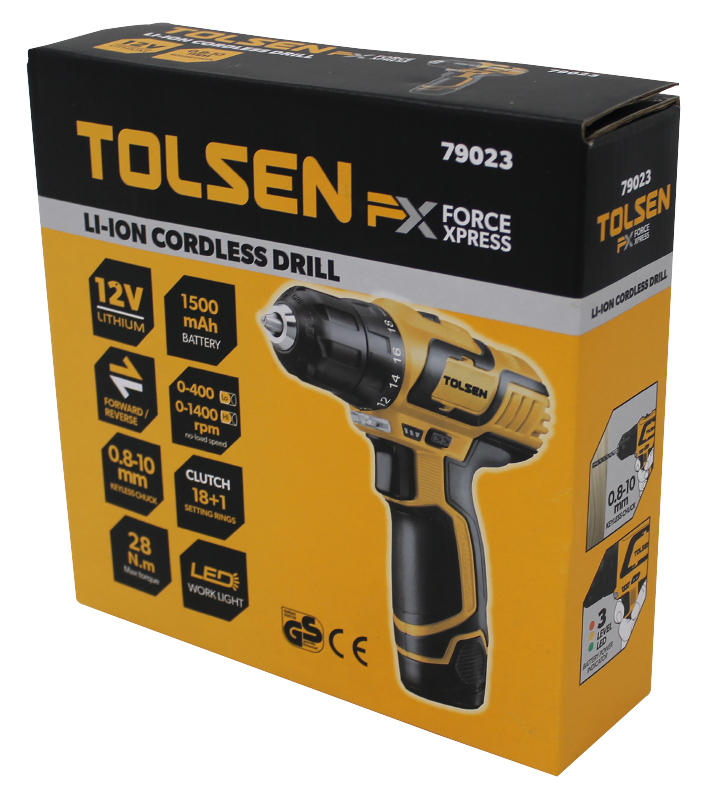 - Perceuse sans fil 12V avec batterie Li-ion de 1500mAh.