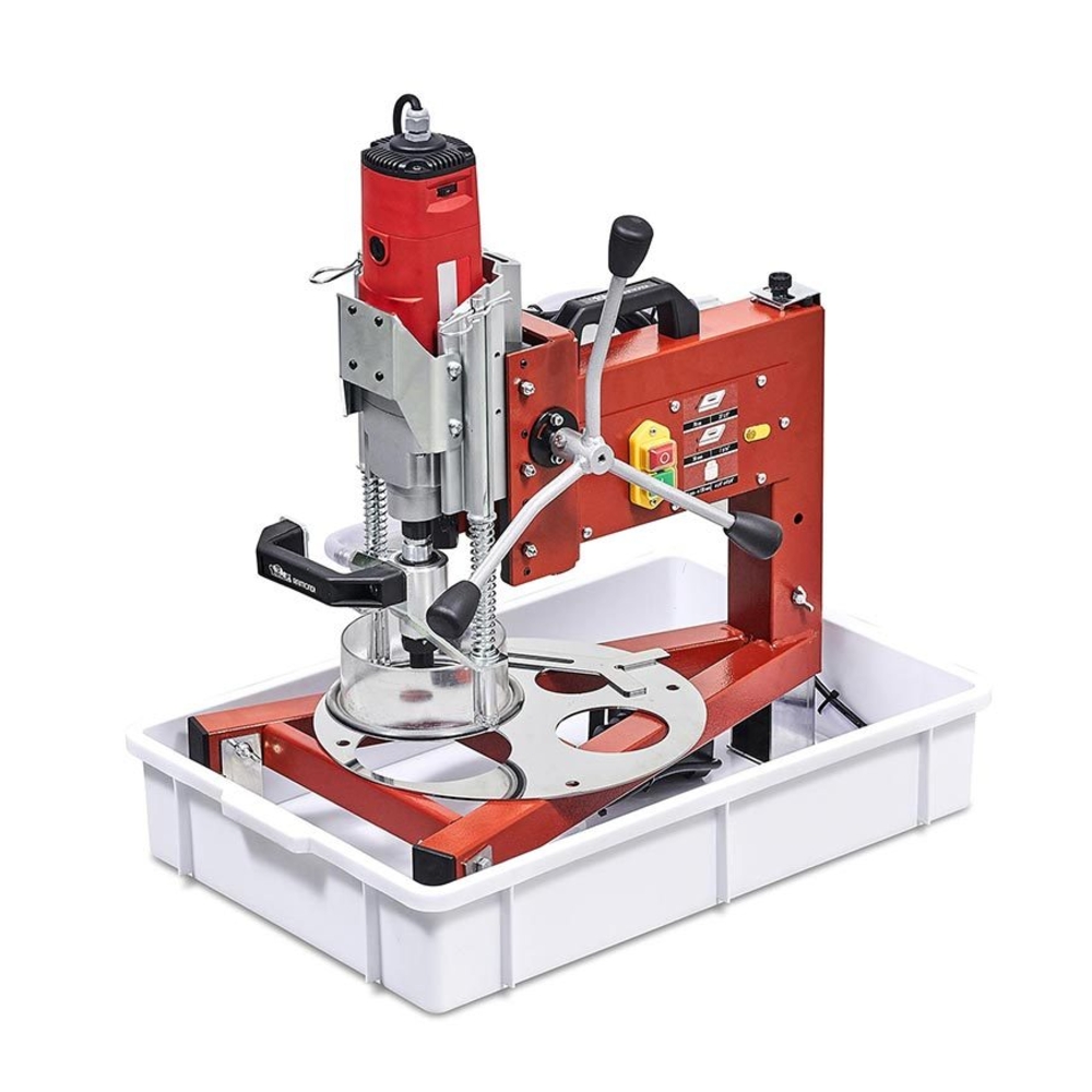 La perceuse Foraspeed 2008 de Raimondi est idéale pour le forage de carreaux en grès cérame, marbre, granit, mono-cuisson et verre. Cette machine permet de réaliser des trous précis, même dans des carreaux déjà posés. Elle est dotée d'une vitesse variable allant de 260 à 1050 tours par minute, assurant un forage adapté à différents matériaux et épaisseurs. Son système de refroidissement interne par pompe à eau optimise la durabilité de la fraise. Pour une utilisation en toute sécurité, elle est équipée d’un dispositif bloquant le carreau.Grandes caractéristiques techniques La perceuse Foraspeed 2008 mesure 65 x 43 x 48 cm et pèse 21,1 kg. Elle peut percer des carreaux jusqu'à une épaisseur maximale de 30 mm, avec un diamètre de fraise pouvant varier de 4 mm à 120 mm. Livrée avec un kit de clés, une pierre de ravivage, ainsi qu'un manuel d’utilisation et d’entretien, cette perceuse s’utilise avec des fraises à attaches rapides, garantissant efficacité et facilité d’utilisation.