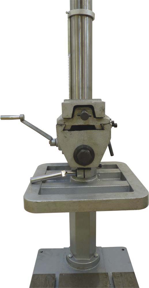 Pour son fonctionnement, cette perceuse est dotée d’un capot de sécurité qui protège l’utilisateur, ainsi qu’un écran de protection. L’interrupteur manque de tension intégré assure une utilisation sans risque, tandis qu'un coup de poing permet d'ajuster efficacement la pression de perçage. La table pivotante, équipée d’un étau réversible, assure une flexibilité maximale lors de l’utilisation pour différents types de pièces à travailler.