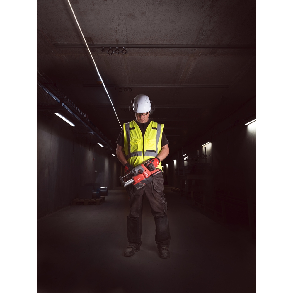 Le perforateur est compatible avec toutes les batteries MILWAUKEE® M18™, offrant ainsi une grande flexibilité d’utilisation et une autonomie adaptée aux exigences du chantier.