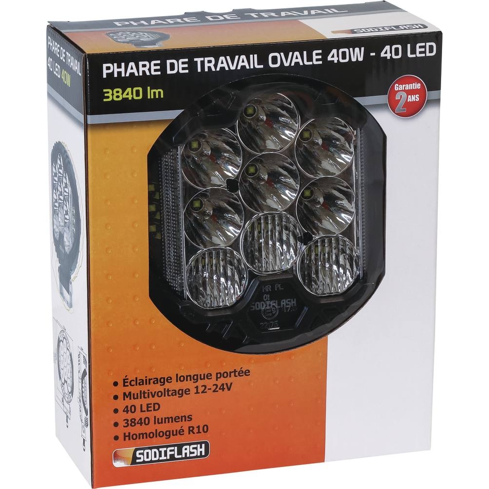 Découvrez Phare de travail ovale LED 12/24V 40W 3800 lumens SODIFLASH - 16054 disponible à l'achat