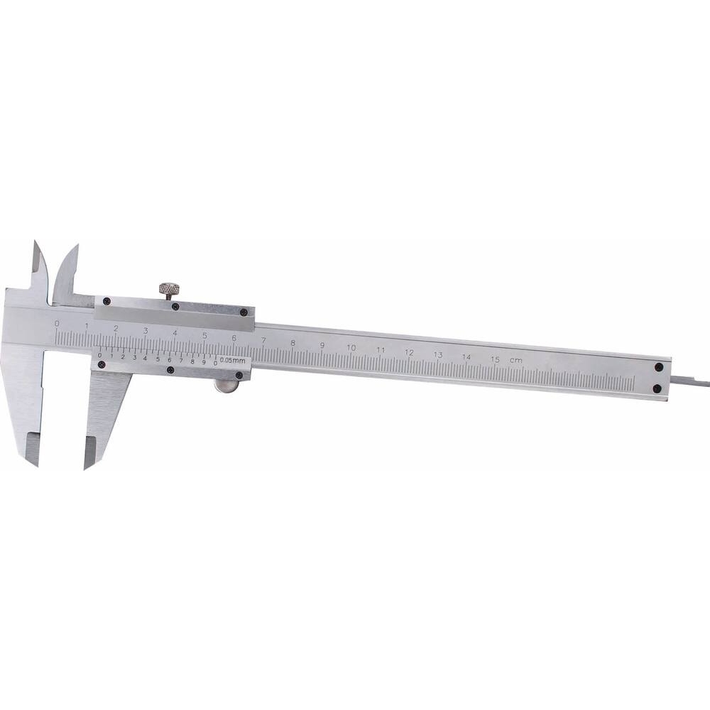 Ce pied à coulisse est conçu pour effectuer des mesures avec une grande précision dans une plage allant de 0 à 150 mm. Il est équipé d'une jauge de profondeur pour des prises de mesures variées. Sa roulette coulissante permet un ajustement facile, et la vis de blocage assure une tenue stable des réglages. Pour l'utilisation, il suffit de positionner les mâchoires du pied à coulisse sur l'objet à mesurer et de lire la valeur sur le réglet.