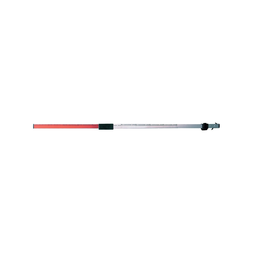 Cette mire à lecture directe permet une visualisation claire des variations de hauteurs, qu'elles soient négatives ou positives. Réglable entre 137 et 250 cm, elle s'adapte à divers chantiers et situations de travail. L'utilisateur peut facilement observer les différences de niveau grâce à son design centré.
