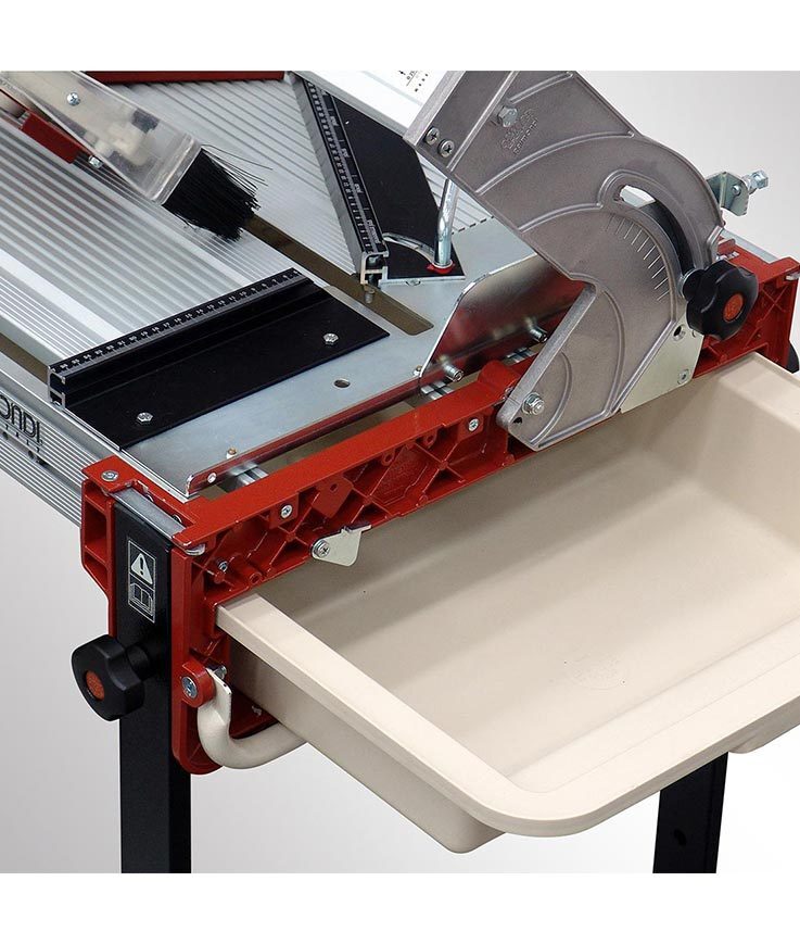 - Accessoires inclus : 1 disque Ø 250 mm pour le grès cérame, roues pour le transport, jeu de clés, pierre de ravivage, manuel d’utilisation et d’entretien