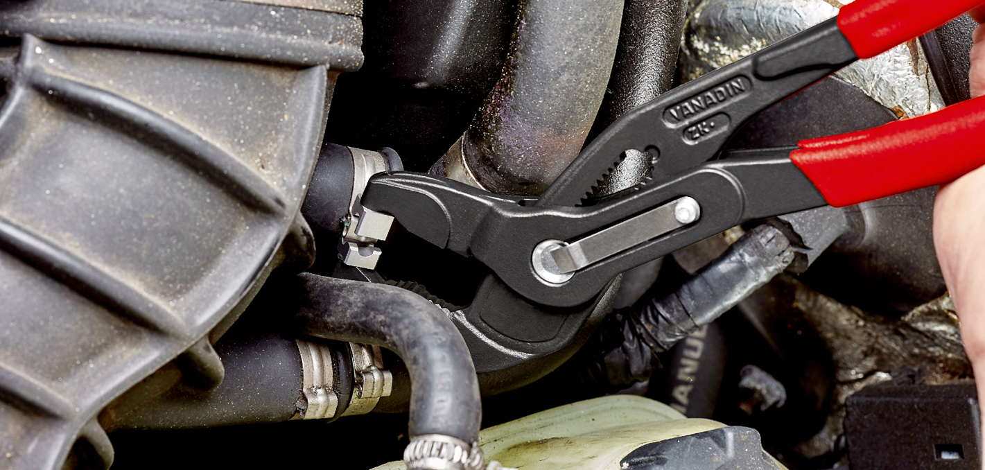 Pour ouverture et fermeture de colliers Click. Inserts de préhension orientables assurant un actionnement sûr des colliers dans n'importe quelle position. Bonne démultiplication, permettant d'ouvrir et de refermer les colliers sans grand effort et en toute sécurité. Pour travailler confortablement, par exemple sur tuyaux de carburant conduites à dépression et toutes sortes de durites. Fonction supplémentaire: desserrage avec ménagement des tuyaux grâce à la mâchoire dentelée. Tête élancée de faible largeur, inserts de préhension orientables: l'outil idéal pour travailler en espaces exigus. Acier électrique au chrome-vanadium, forgé, trempé à l'huile.