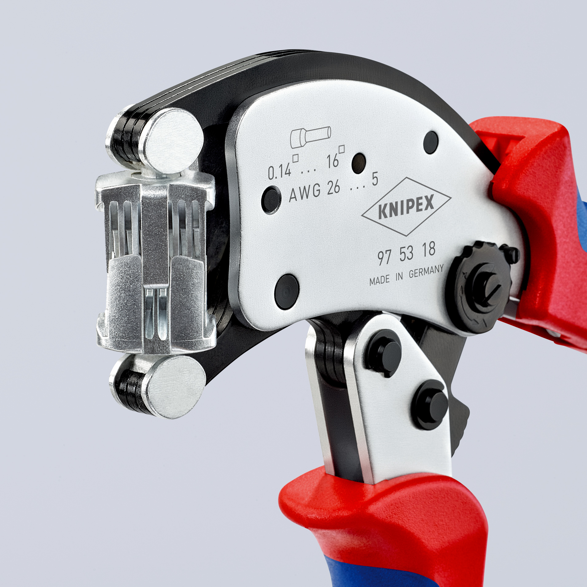 Pince à sertir auto-ajustable pour embouts de câble, avec tête de sertissage rotative Twistor16® - KNIPEX - 97 53 18