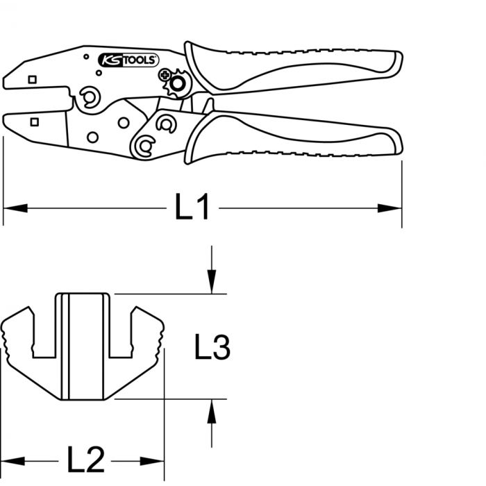 - Longueur des mâchoires pour cosses L3 : 34 mm