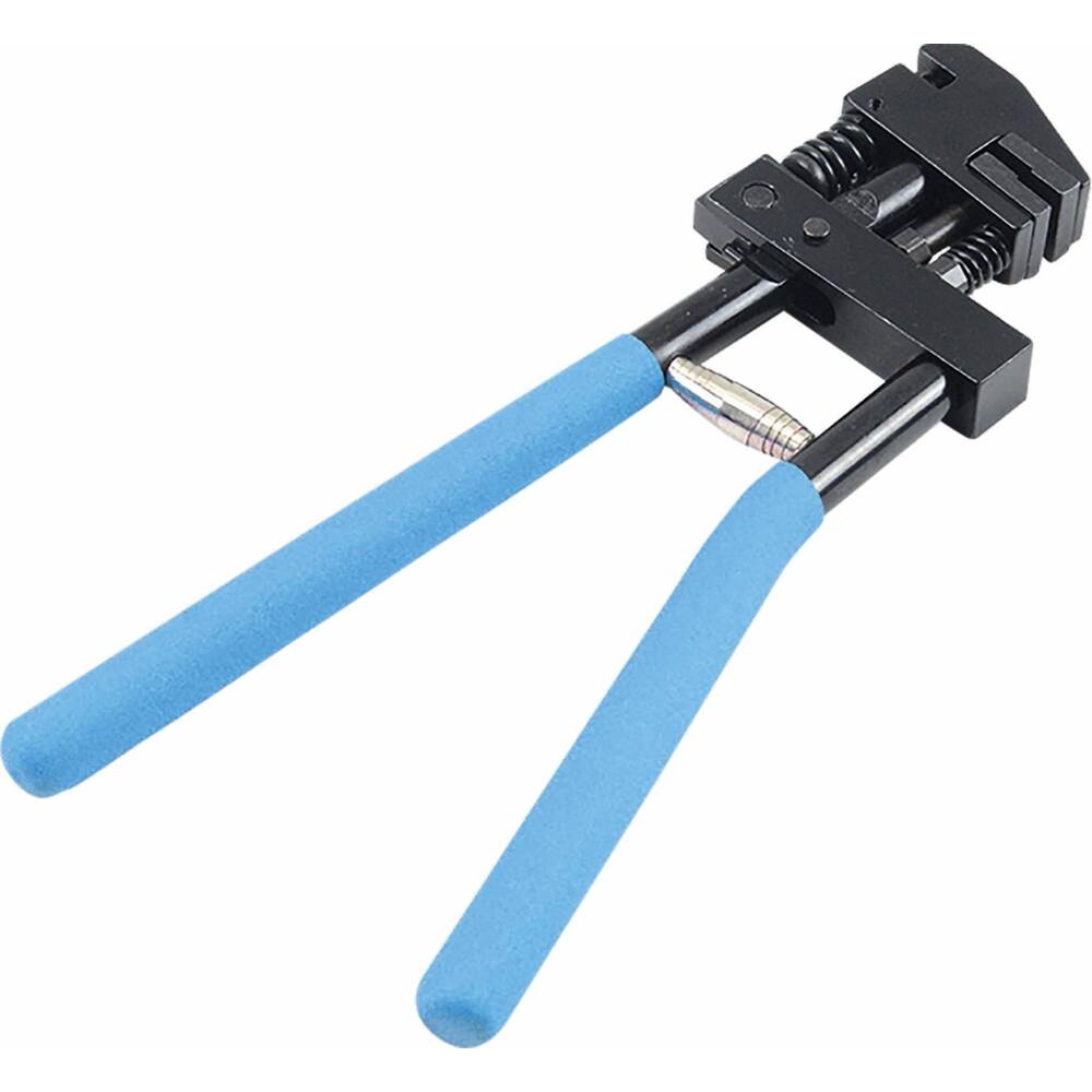 Cette pince est équipée d'une tête spécialement conçue pour poinçonner des trous de 5 mm de diamètre et plier des tôles jusqu'à une épaisseur de 1,4 mm. Pour une utilisation efficace, il est recommandé de choisir des tôles avec une épaisseur maximale correspondant aux spécifications de l'outil.
