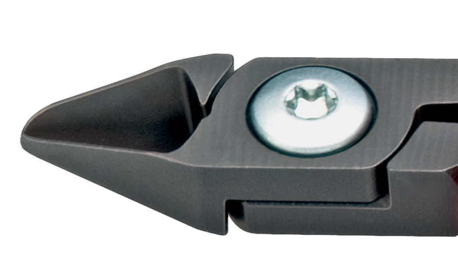 Charnière vissée pour une précision et une résistance élevées. Pour travaux de coupe très délicats, par ex., dans les domaines de l'électronique et de la mécanique de précision. Avec tranchants coupants, meulés pour fils doux, fils durs ainsi que pour la corde à piano. Tranchants trempés par induction, dureté d'env. 64 HRC. Double ressort à frottement réduit permettant une ouverture de la pince régulière et sans à-coups. Acier à outils de qualité spéciale, forgé, trempé à l'huile.