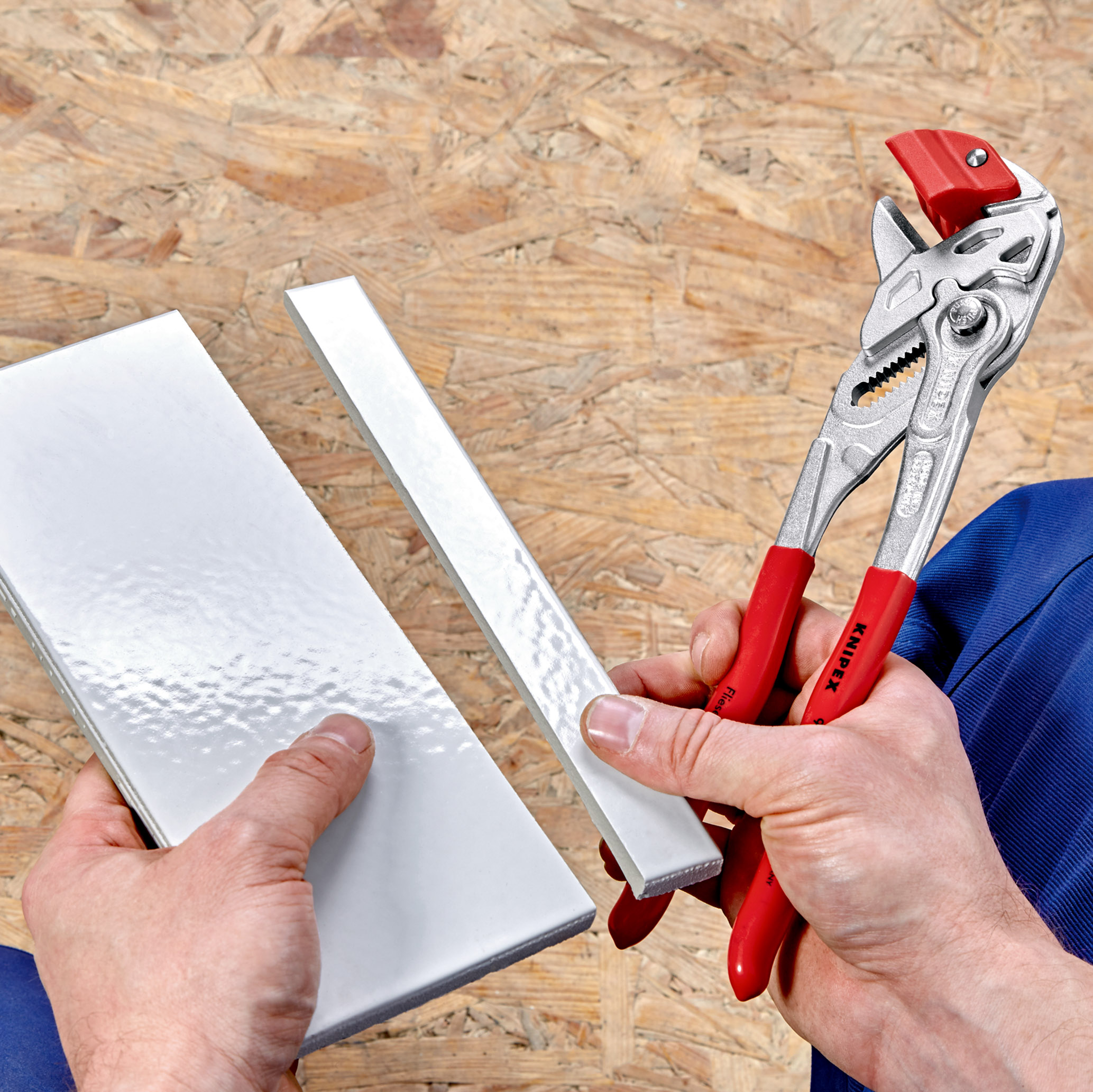 La pose de carreaux devient un jeu d’enfant avec la pince de carreleur Knipex. Cet outil de précision révolutionne le travail en permettant une cassure nette des carreaux, particulièrement précieux pour les matériaux coûteux. Grâce à un mécanisme qui multiplie l'effort de la main par 10, il réduit considérablement le risque de casse et, par conséquent, de rebut.
