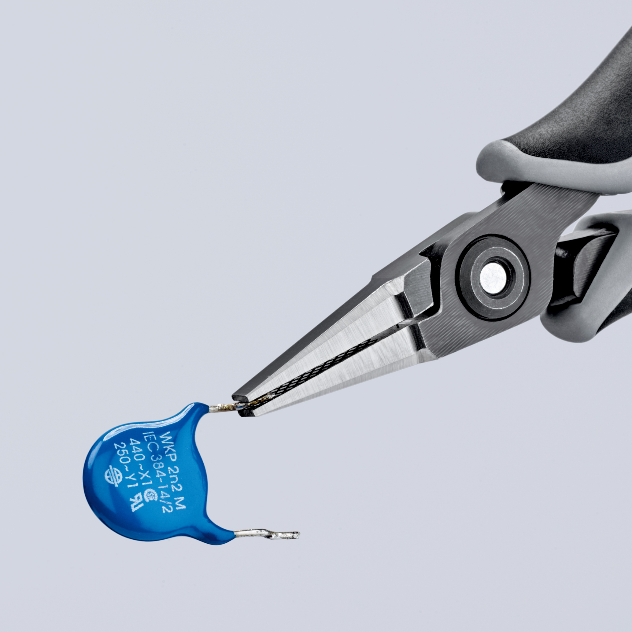 Une gamme pour les exigences les plus strictes en termes de performance et de résultat. Pinces de précision pour les travaux de montage très précis, par ex., dans les domaines de l'électronique et de la mécanique de précision. Pour saisir, tenir et plier. Poignées dérivant l'électricité statique – dissipative. Charnière vissée: mouvement de la pince précis et sans jeu. Surfaces de la charnière fabriquées avec précision pour un mouvement régulier et une friction minimale dans toute la zone d'ouverture. Double ressort à frottement réduit permettant une ouverture de la pince régulière et sans à-coups. À striage en croix au laser de précision. Finition antireflet. Poids faible. Poignées ergonomiques ESD bicolores noir/gris bi-matière. Acier chromé à roulements à billes, forgé, trempé à l'huile en plusieurs phases.