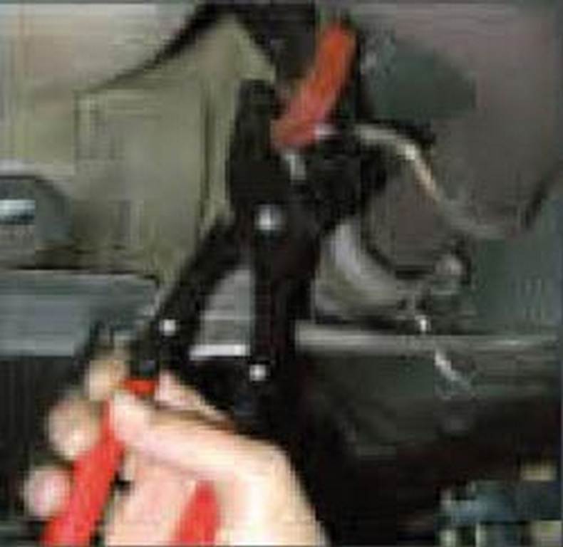 Pince qui vient en appui sur le téton de maintien du silentbloc et sur la patte arrière.