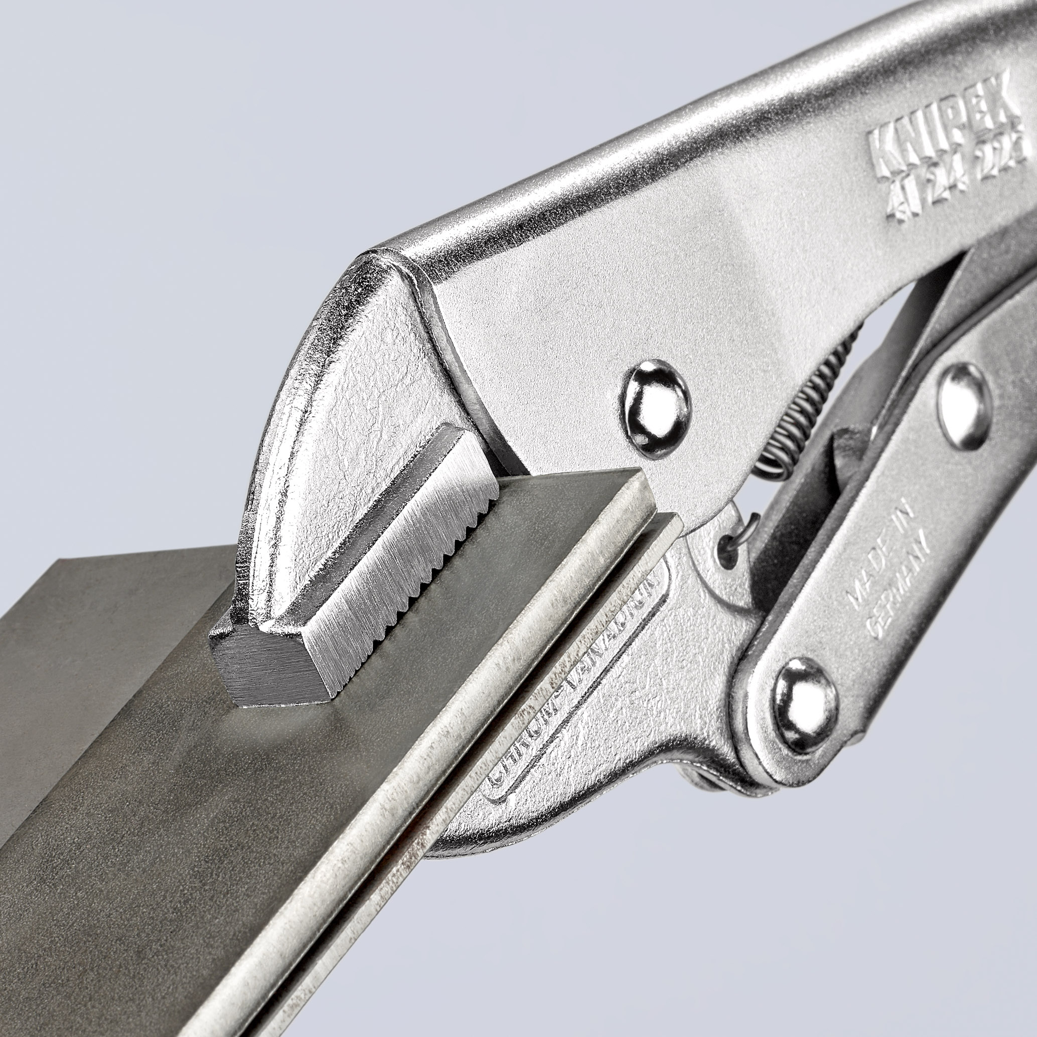 Maintiennent en toute sécurité les éléments ronds, profilés et plats. Très résistant. Avec vis de réglage et levier de déblocage. Prise à une seule main. Pression de serrage élevée grâce à la démultiplication par genouillère. Corps de pince: acier laminé, à haute résistance. Mâchoires de préhension: Acier électrique au chrome-vanadium, forgé.
