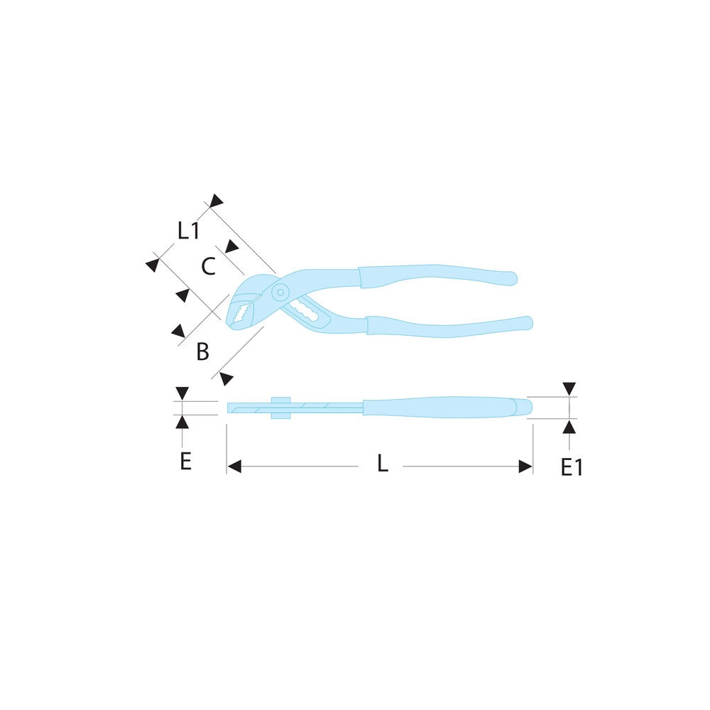 Avec une longueur de 250 mm, cette pince est conçue pour résister à la torsion et à la flexion. Sa tête affinée et sa denture autoserrante garantissent une prise ferme et constante. Les dents sont trempées, offrant une dureté de 62 HRC, ce qui améliore la longévité de l'outil. Sa finition chromée vernie et ses poignées bi-matière ajoutent à sa robustesse tout en assurant un confort optimal lors de son utilisation.