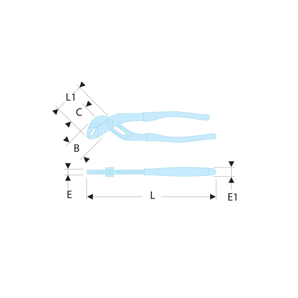 Cette pince multiprise est conçue pour offrir un confort d'utilisation optimal grâce à ses branches spatulées, permettant une prise en main aisée. Sa denture autoserrante garantit une saisie sécurisée des objets, tandis que son système de sécurité anti-pince-doigts protège l'utilisateur contre les blessures. Facile à utiliser, elle dispose de six positions de réglage, rendant cet outil polyvalent pour différentes applications.
