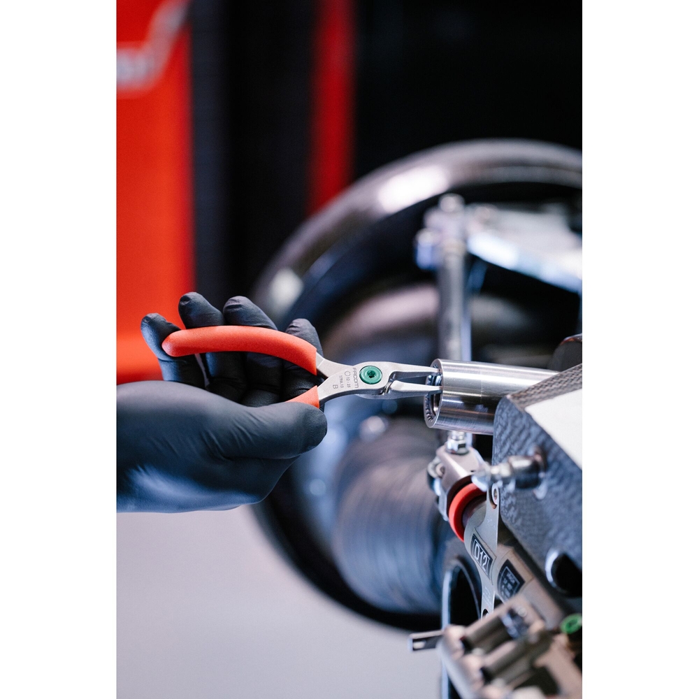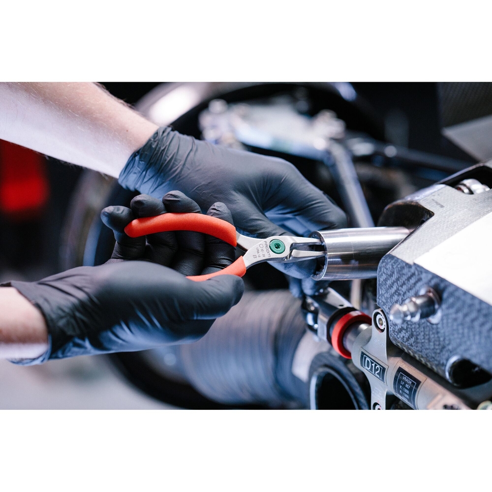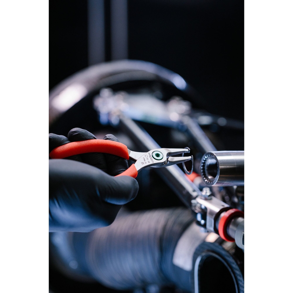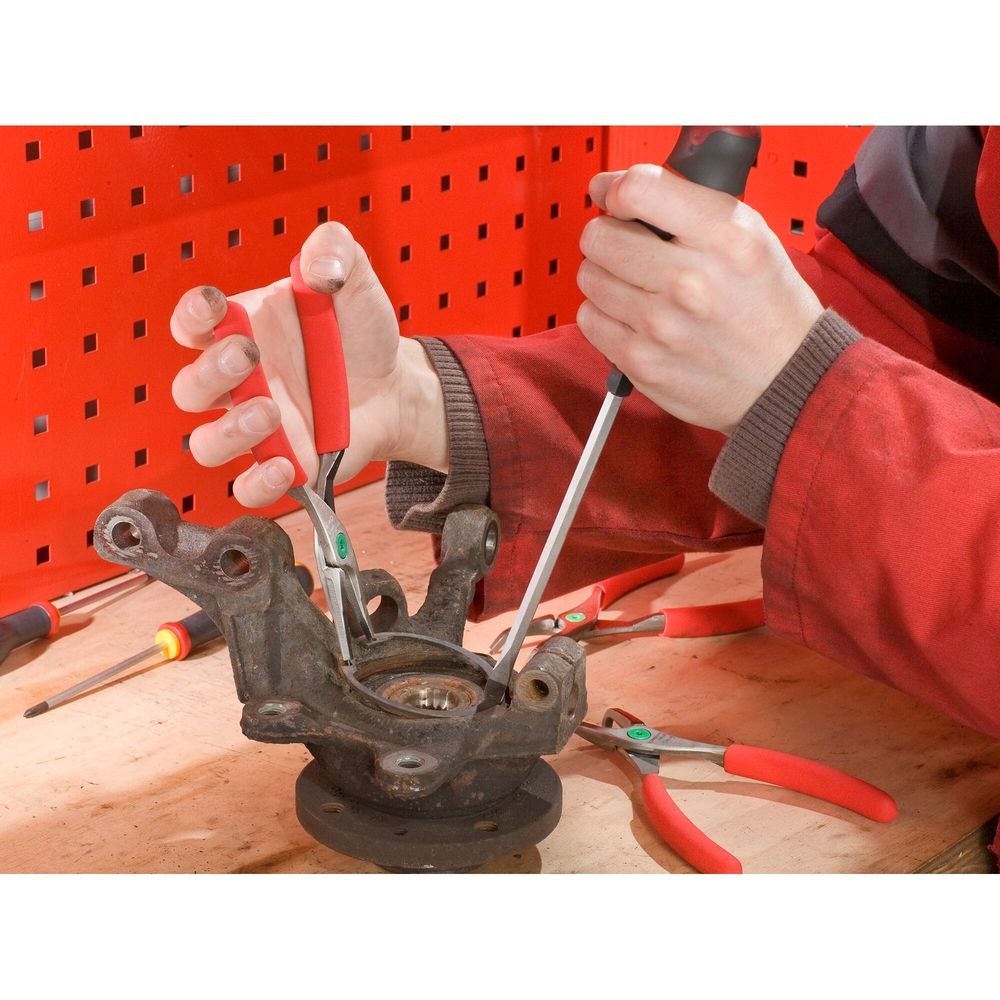 Cette pince facilite la manipulation et l'installation des circlips intérieurs grâce à ses embouts spécialement conçus. Les embouts allongés et légèrement orientés à 10° assurent un maintien optimal. Elle est idéale pour les travaux mécaniques où la précision et la résistance sont essentielles.