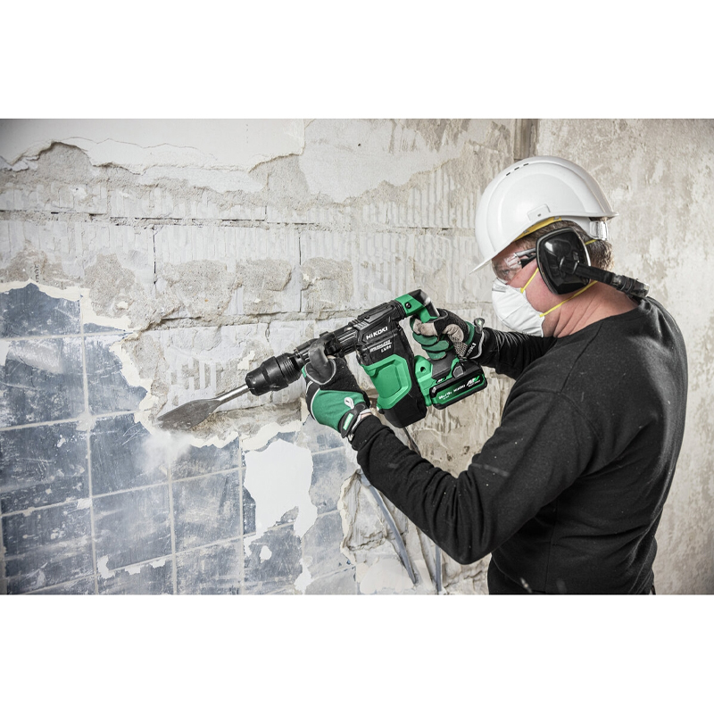 Le confort est au cœur de sa conception grâce à la poignée latérale en D qui absorbe efficacement les vibrations et à la poignée principale Low Vibration Handle, toutes deux revêtues de caoutchouc pour une prise ferme et agréable. Le couvercle du boîtier du cylindre améliore encore la sensation de maîtrise pendant l'utilisation, tandis que le bouton de fonctionnement continu permet de maintenir l’outil actif sans effort sur la gâchette, limitant la fatigue sur les longues sessions. L’utilisateur peut adapter sa puissance de frappe selon les besoins grâce à un sélecteur à quatre vitesses, et ajuster l’angle du burin sur 12 positions différentes pour s’adapter à toutes les situations. Bénéficiant de la puissance du filaire et de la liberté du sans-fil, ce piqueur est un allié polyvalent et robuste sur tous les chantiers.