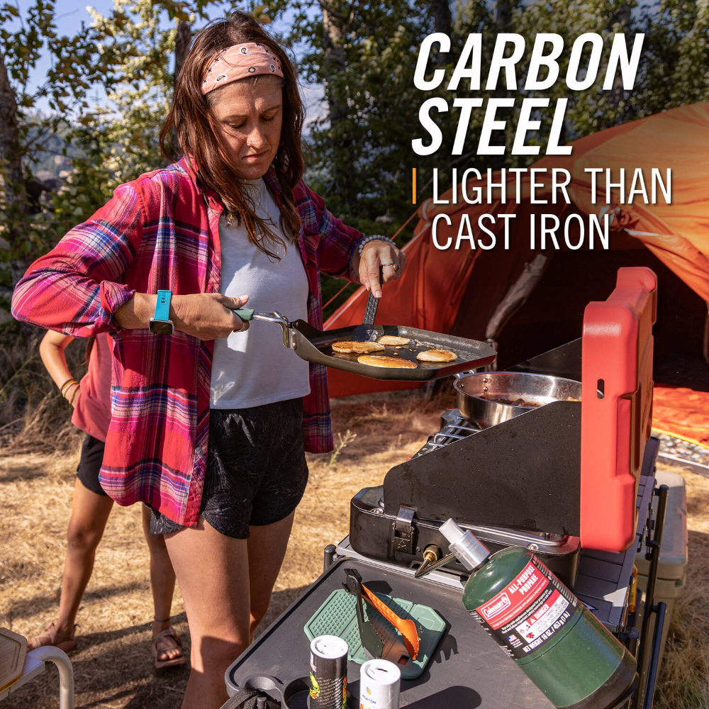 La plaque de cuisson ComplEAT s'imposera sans aucun doute comme une nouvelle référence incontournable en matière de revêtement antiadhésif spécialement conçue pour le camping. Conçue en acier au carbone, cette plaque de cuisson de grande taille combine la robustesse et la durabilité tout en offrant des propriétés antiadhésives comparables à celles de la fonte, mais avec un poids considérablement réduit. Sa forme carrée permet d’optimiser la surface de cuisson disponible, tandis que ses parois latérales élevées assurent que les aliments restent bien en place pendant la cuisson. De plus, la poignée amovible, recouverte de silicone, garantit une prise en main confortable et peut être facilement retirée, ce qui facilite grandement le rangement et le transport de la plaque.