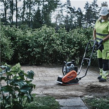 Motor/engine model 4-stroke air-cooled 'Puissance de sortie (Chiffre avancé par le constructeur du moteur.)' 3.6 kW Exhaust emissions (CO2 EU V) 757 g/kWh Type de carburant Petrol Fréquence 95 Hz Vitesses 33 m/min Poids 84 kg 'Niveau de puissance sonore garanti (Lwa)' 103 dB(A) 'Niveau de pression sonore au niveau des oreilles de l'utilisateur' 91 dB(A) Des heures de travail en toute efficacité La poignée à faible vibrations, efficace et brevetée, réduit les vibrations à un niveau inférieur à 2 m/s², ce qui vous permet de travailler pendant des heures sans vous fatiguer, ni dépasser les valeurs limites réglementaires. Manipulation facile L'anneau de levage, la poignée rabattable et le kit de roues en option facilitent le transport du compacteur. Les sangles de levage sont de série. Protégez le pavage Le kit de pavage facile à fixer et disponible en option protège les pavés des rayures et des fissures. Travailler plus avec moins d'eau Le large réservoir d'eau en option et le système de distribution d'eau intelligent vous permettent de travailler plus longtemps, en vous arrêtant moins souvent pour le remplissage.