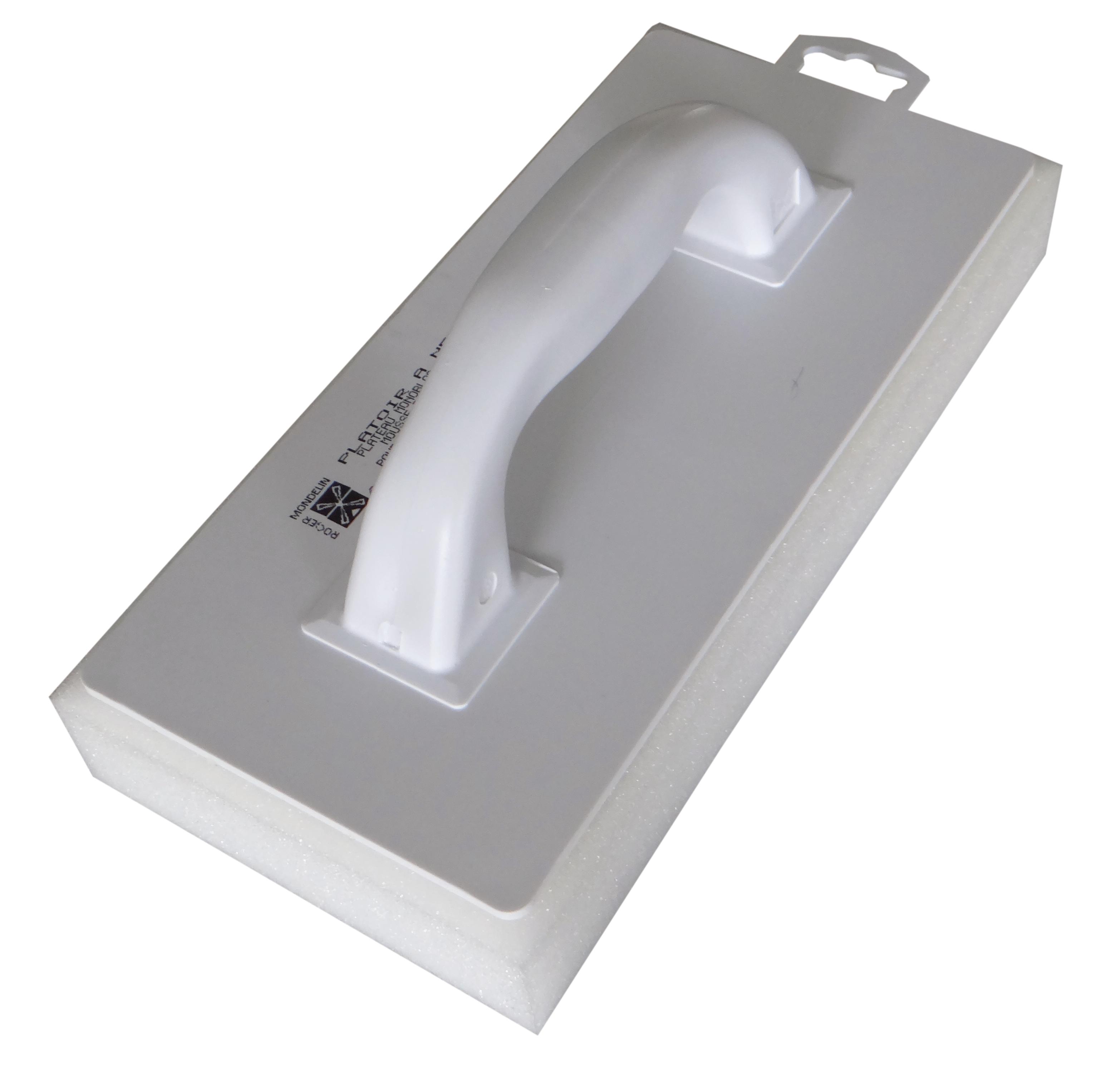 Plateau et poignée monobloc en polystyrène choc. Poignée ergonomique qui assure un meilleur confort de travail. Semelle mousse PE blanc. Pour le nettoyage des joints ciment.