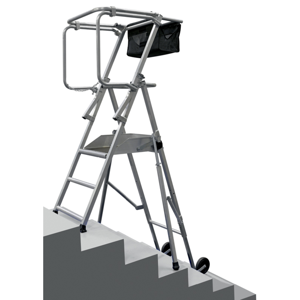 Découvrez la plateforme individuelle roulante spécialement conçue pour les escaliers. Ce modèle novateur s'installe facilement dans tous les types d'escaliers, répondant aux exigences du décret du 1er septembre 2004 - Norme PIRL. Avec une hauteur de travail maximum de 2,85 mètres sur sol plan et capable de supporter une charge utile de 150 kg, il est parfait pour divers travaux en hauteur.