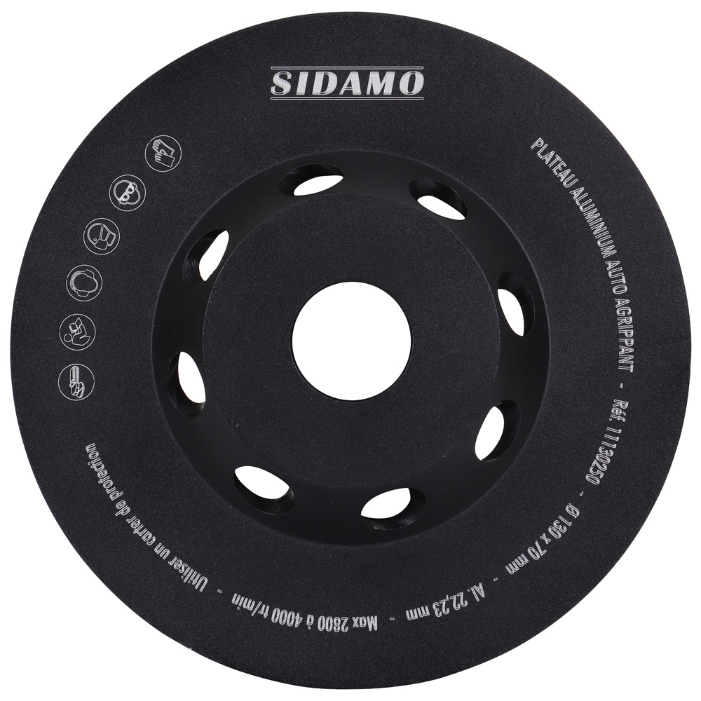 PLATEAU ALUMINIUM D.130x70 AL 22,23 AUTO AGRIPPANT POUR MEULEUSE - SIDAMO - 11130250