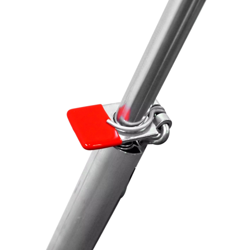 - Protection arrière assurée par un garde-corps rigide et articulé avec accrochage automatique.