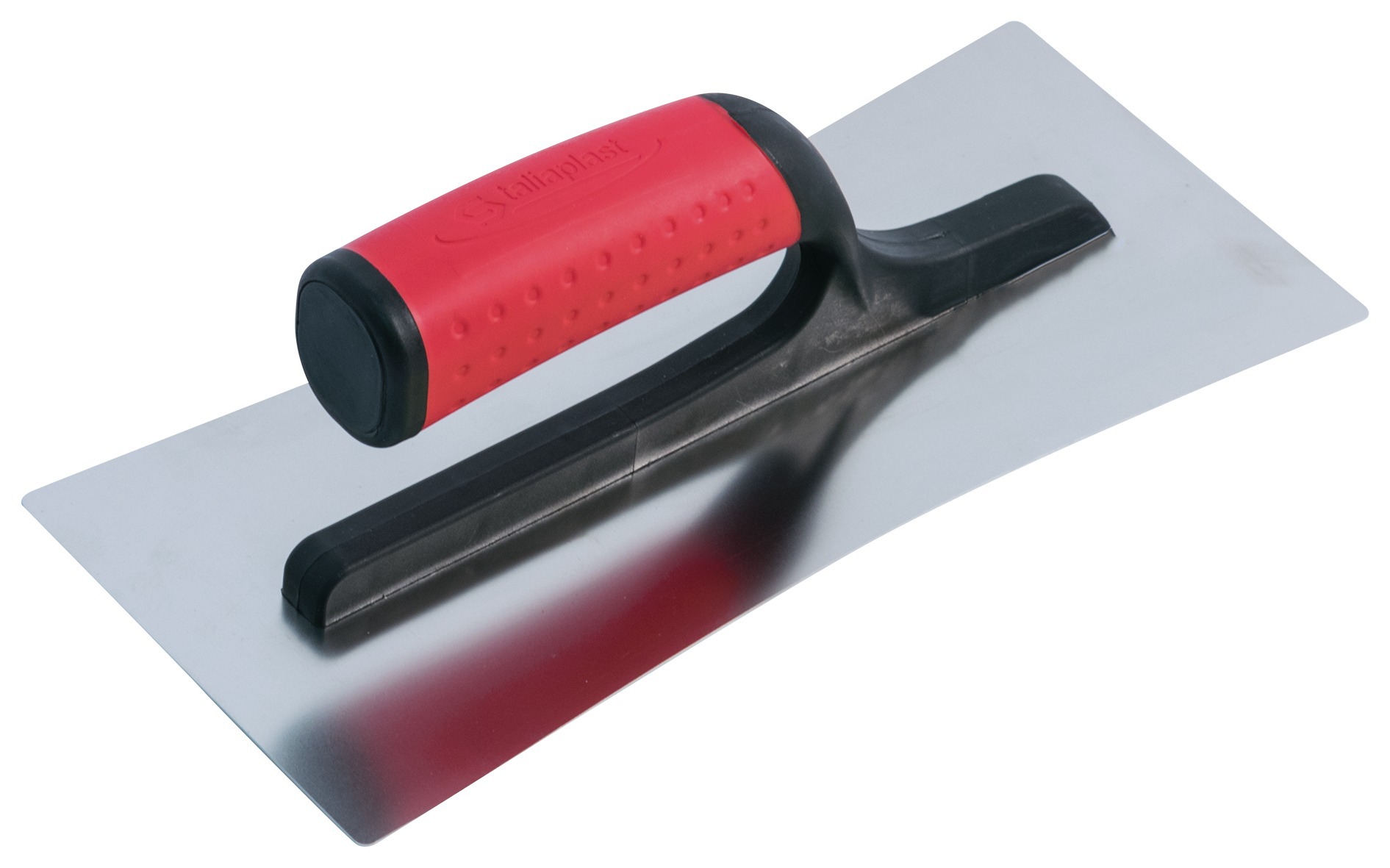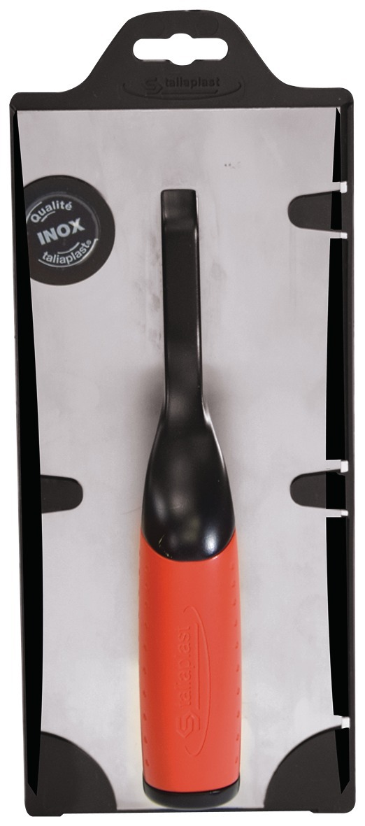 Lame INOX trempé de 0,7 mm. Découpe laser en forme concave spécialement étudiée pour charger en enduit les bandes de plaques de plâtre. Angle à 90° arrondi avec un plat de 15 mm pour un lissage de l'enduit sans rayer la plaque. Monture en polyamide renforcée assemblée avec 6 goujons acier soudés. Manche bi-matière ergonomique pour une parfaite tenue en main et plus de confort. Nettoyage facile. Livré avec porte platoir.